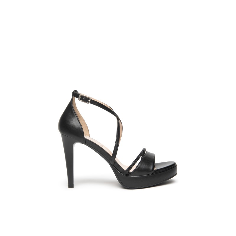 Sandales en cuir noir à talon aiguille Nero Giardini -15600